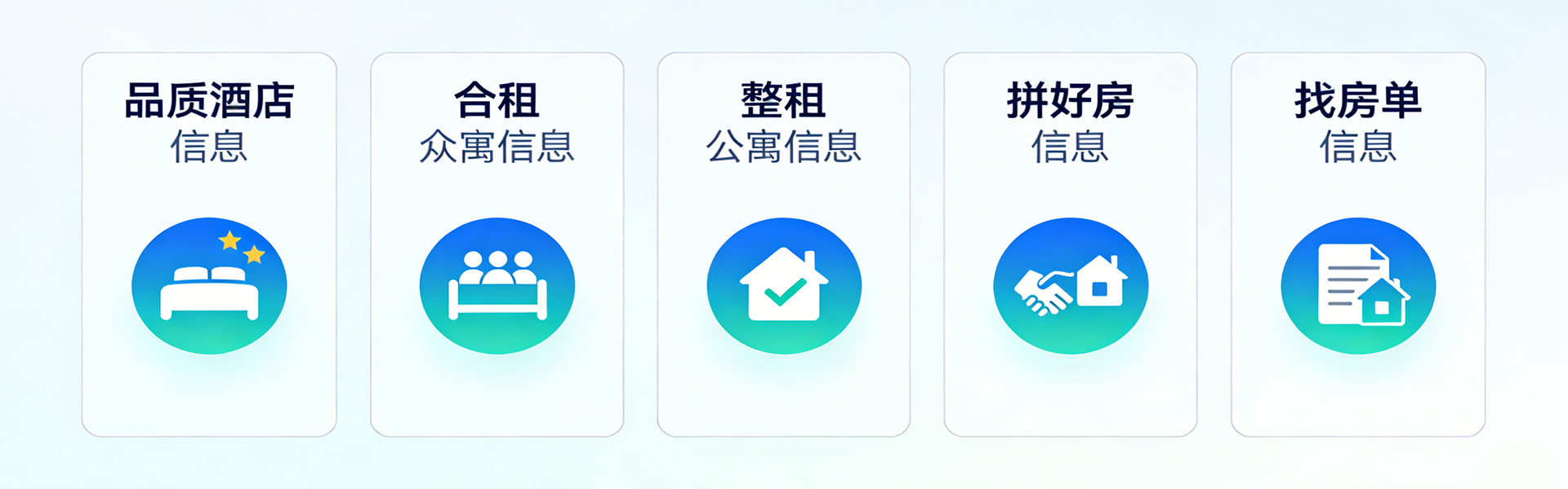 欢迎您走进我们的领域,全面了解我们的业务与风采。让美好居住,触手可及本合(深圳)文化传播有限公司,植根于创新活力之都深圳,是一家专注于打造高品质居住信息生态链的文化传播与科技服务企业。我们以“信息为本,合力共赢”为核心理念,致力于通过创新的信息平台,解决现代都市人在居住领域的信息不对称问题,连接需求,创造价值,助力每一位用户实现更安心、更便捷、更理想的居住生活。核心平台:一站式居住信息解决方案我们精心打造并运营着一站式居住信息发布与服务平台。平台深度聚焦都市居住领域,精准划分五大核心信息板块,全方位覆盖多元化的居住需求:品质酒店信息: 网罗精选酒店资源,为用户提供短期差旅、度假或过渡期的品质住宿选择,注重舒适体验与性价比。合租公寓信息: 提供真实、可靠的合租房源信息,助力年轻人、职场新人以更灵活的方式安居都市,降低居住成本,拓展社交可能。整租公寓信息: 汇聚各类品牌公寓、业主直租等整租房源,满足家庭、追求独立空间人士的一站式安家需求。拼...